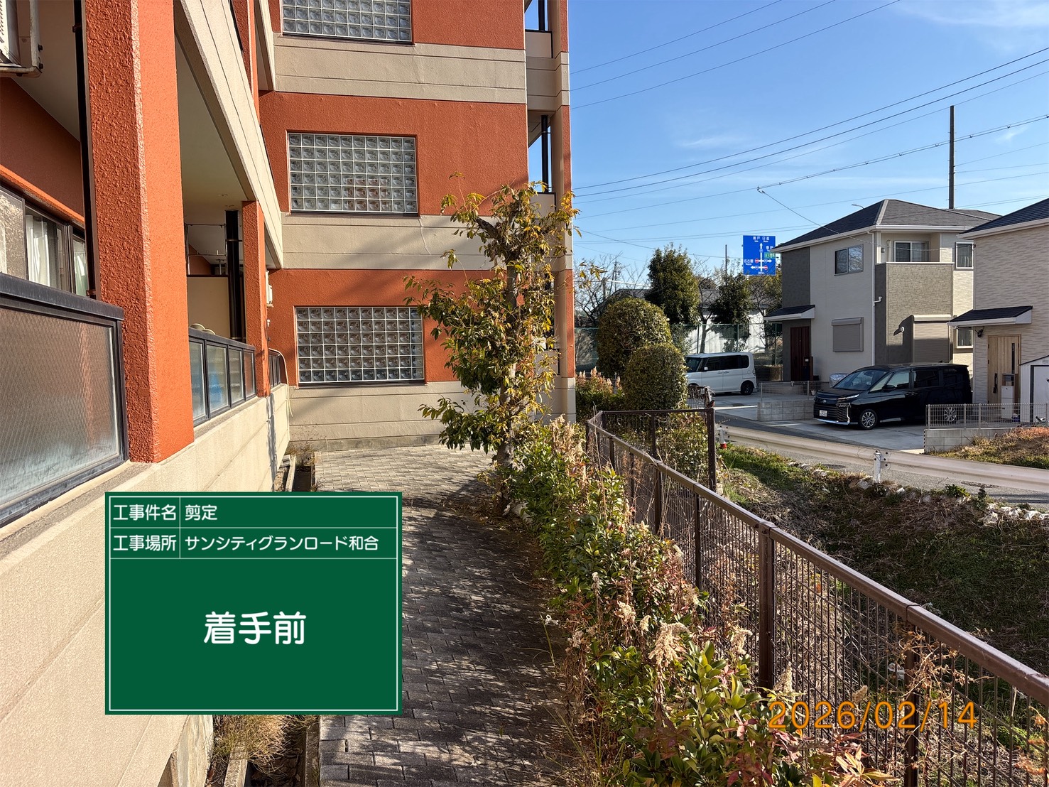 【東郷町和合】マンション植栽管理|2月の剪定・除草・消毒作業を実施しました