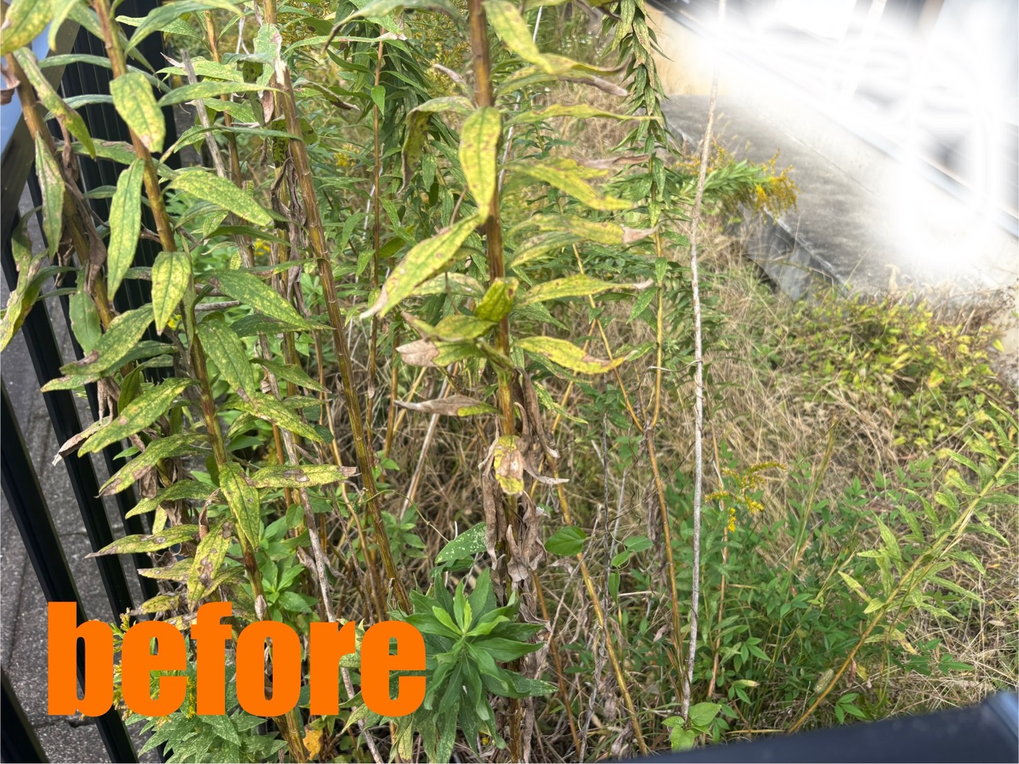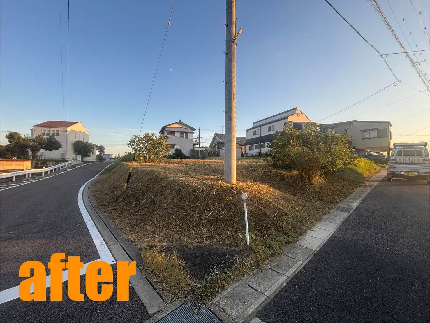 豊田市花園町にて、草刈り作業を行いました。 もともとお客様ご自身で定期的に草刈りをされていましたが、近年は作業が難しくなってきたとのことで、当社にご相談をいただきました。現地の状況を確認し、安全かつ丁寧に草刈りを実施。作業後はスッキリとした景観に整い、お客様にも大変ご満足いただけました。